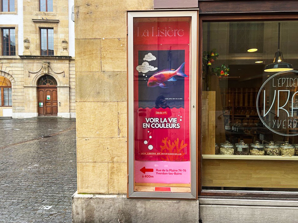 - Création d’une campagne de 5 affiches pour promouvoir La Lisière au centre-ville d’Yverdon (Place Pestalozzi)
